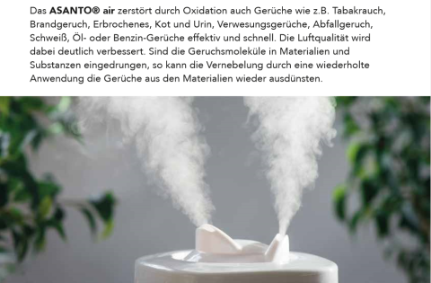Das von der Wasserform GmbH bereitgestellte biologische Desinfektionsmittel ASANTO® air wirkt zuverlässig gegen Bakterien, Viren, Pilze und Keime. „ASANTO® air ist ein starkes Desinfektionsmittel, jedoch ungiftig, haut- und augenverträglich für Menschen und hinterlässt keine problematischen Rückstände. Der Anwender benötigt keine Schutzkleidung und muss den Raum während der Vernebelung nicht verlassen. „Ihr Geschäftsbetrieb kann ohne Unterbrechung weiterlaufen“, sagt Dieter Mikus von der Wasserform GmbH. Darüber hinaus wirkt der Wirkstoff der Verbreitung von Schimmelpilzsporen und Pilzfäden entgegen und entfernt alle organischen Gerüche durch Oxidation. Dazu zählen beispielsweise der Geruch von Tabakrauch, Feuerbrand, Erbrochenem, Kot und Urin, Verwesung, Abfall, Schweiß sowie Öl oder Benzin. „Auch wenn Gerüche bereits in Materialien eingedrungen sind, können diese mithilfe der 3D-Vernebelung von ASANTO® air entfernt werden. Die Geruchsmoleküle werden von den Materialien langsam wieder freigesetzt und können so durch die wiederholte Anwendung der 3D-Vernebelung ausgedünstet werden“, erklärt Marcus Kraus von der Glanzwerk GmbH. Kunden können das Komplettpaket zur 3D-Vernebelung über den Onlineshop der Bieler Drucklufttechnik GmbH erwerben. Die Dienstleistung ist bei allen drei Unternehmen buchbar und wird von Glanzwerk ausgeführt. „Zu unseren Kunden zählen Haushalte, Gewerbebetriebe, Industrieunternehmen, Taxi- und Busunternehmen, Hotels und Gastronomie, Kindergärten und Schulen, Pflegeheime sowie Arztpraxen, Sport- und Schwimmeinrichtungen, Landwirtschaft, Campingplätze, Kirchen, Großveranstaltungen und Festzelte“, berichtet Albrecht Reisner von der Bieler Drucklufttechnik GmbH. Auch die Geruchsbeseitigung an Tatorten ist mithilfe der 3D-Vernebelung von ASANTO® air problemlos möglich. „Frische Luft beeinflusst unsere Gesundheit und unser Wohlbefinden. Lufthygiene ist daher überall wichtig, wo wir uns aufhalten, und für viele Arbeitsbereiche unerlässlich. Durch den Ausbruch des Coronavirus wird die Desinfektion von Räumen und Fahrzeuginnenräumen nun jedoch deutlich stärker gefordert. Mit der Desinfektion durch die 3D-Vernebelung mit ASANTO® air können Sie sich und Ihren Mitmenschen auch in der aktuellen Krisensituation ein sicheres Gefühl am Arbeitsplatz, bei Freizeitaktivitäten, im Urlaub oder zuhause geben“, so Marcus Kraus, Dieter Mikus und Albrecht Reisner.
