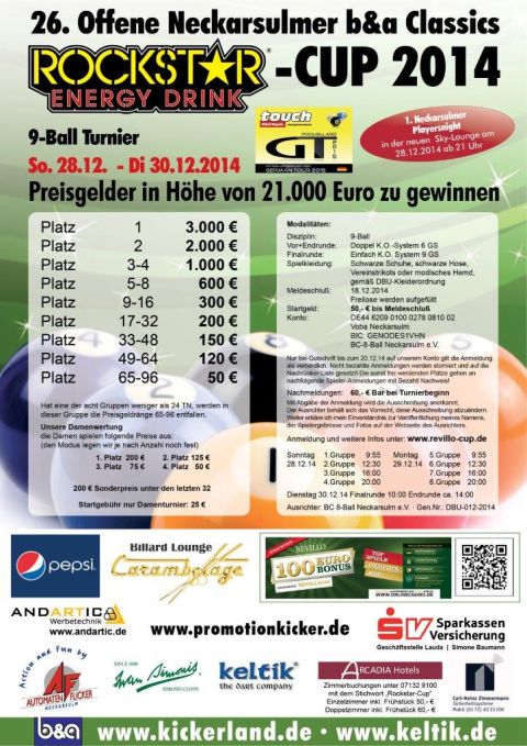 Folgende Worte der Snooker- und Pool-Billard-Legende Tony Drago aus Malta spiegeln absolut treffend, was man über den diesjährigen Rockstar-Cup in Neckarsulm wissen muss. „Ich hatte hier in Deutschland mit guten Spielern gerechnet, aber dass es derart gut sein würde, hätte ich nicht gedacht.“ In die gleiche Kerbe schlugen auch die beiden Rückkehrer in die Billard-Szene, Martin Poguntke aus Wolfsburg und der St. Augustiner Sascha Trautmann.