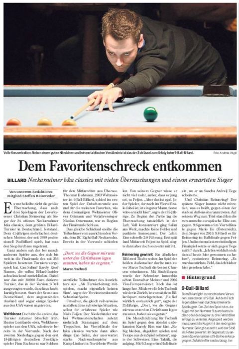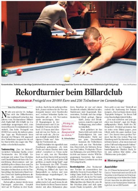 Das Turnier war mit 256 Teilnehmer voll und somit 2012 das größte Billardturnier in Deutschland